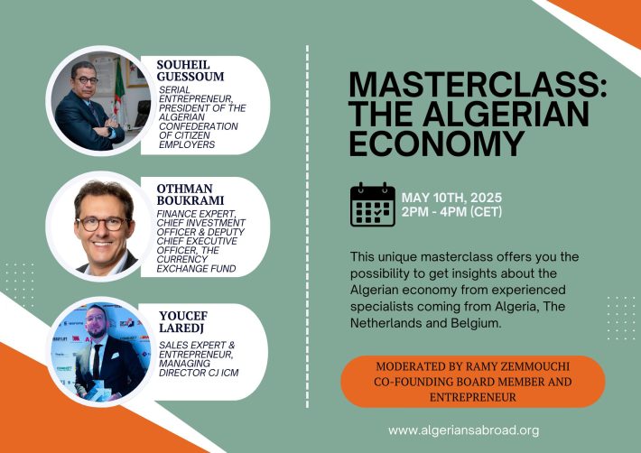 Student Event Yesterday was a big succes, again! We welcomed 40 young Algerians coming from the Netherlands, Belgium and Luxembourg in the heart of Rotterdam. We gathered to talk about personal leadership, entrepreneurship and academic development. Many thanks to our guest speakers Hayat Ramdani and Naila Loudini who inspired us with their academic journey in […]